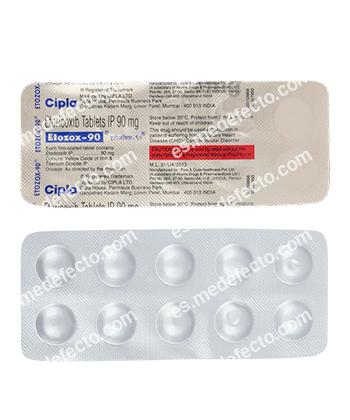 Etoricoxib is used to treat acute and chronic osteoarthritis, ankylosing spondylitis, acute gouty arthritis, to relieve of chronic musculoskeletal pain. It contains etoricoxib, a selective inhibitor of cyclooxygenase-2 (COX-2), which blocks the formation of prostaglandins, substances responsible for inflammation, pain and fever symptoms. Etoricoxib has no effect on platelet function and gastrointestinal mucosa.