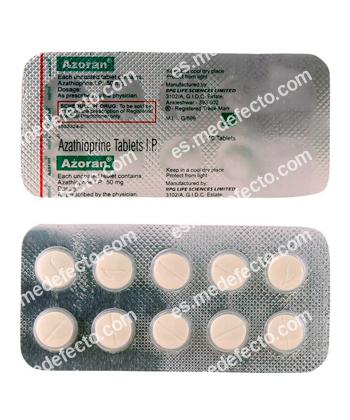 Azathioprine contains azathioprine, which is an immunosuppressant. It is used to prevent rejection of kidney transplants, in treatment of rheumatoid arthritis, chronic active hepatitis, systemic lupus erythematosus, dermatomyositis, periarteritis nodosa, acquired hemolytic anemia, idiopathic thrombocytopenic purpura, gangrenous pyoderma, psoriasis, Crohn's disease, ulcerative colitis, myasthenia gravis, pemphigus (a chronic blistering skin disease), Reiter's syndrome (autoimmune condition that is caused by an infection in another part of the body), radiation dermatitis.